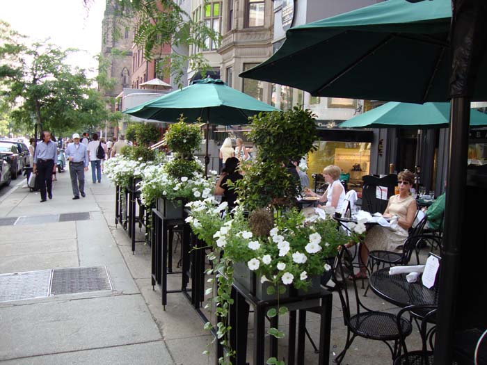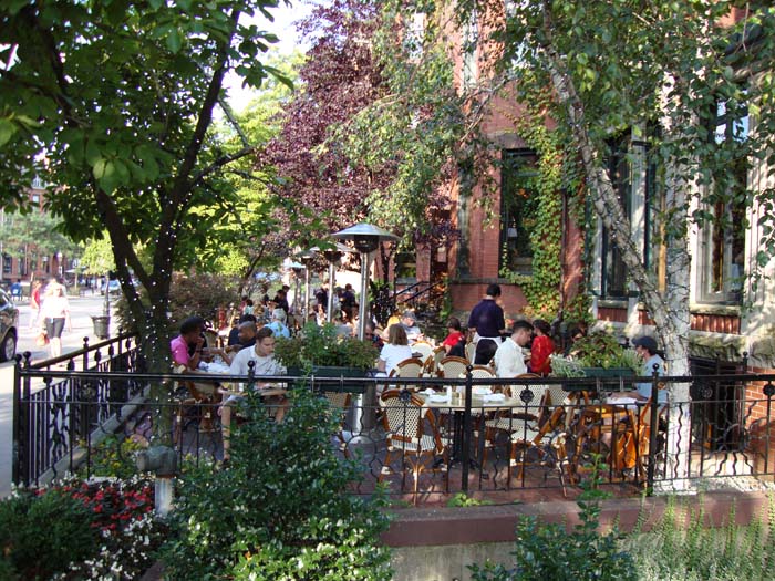 Back Bay which was built on landfill is an upscale residential area dominated by Victorian brownstones; Newbury and Boylston streets have many exclusive shops and fine restaurants with outdoor seating in the summer, wonderful for people-watching. Like elsewhere in Boston it is steeped in history, with Trinity Church in Copley Square and the Boston Public Library on the opposite side. Copley Square hosts a Farmers Market and outdoor concerts and festivities in the summer.