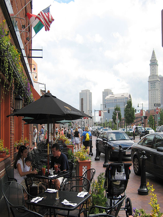 The North End is the traditional Italian neighborhood of Boston. The area, long separated from downtown Boston by the old elevated central artery is now seeing a wave of newcomers with the result that fewer 'mom-and-pop' stores remain as gentrification is slowly overtaking this once tight-knit Italian community, however if you like Italian food there are many restaurants from which to choose - ranging from family-style to high-price menus.